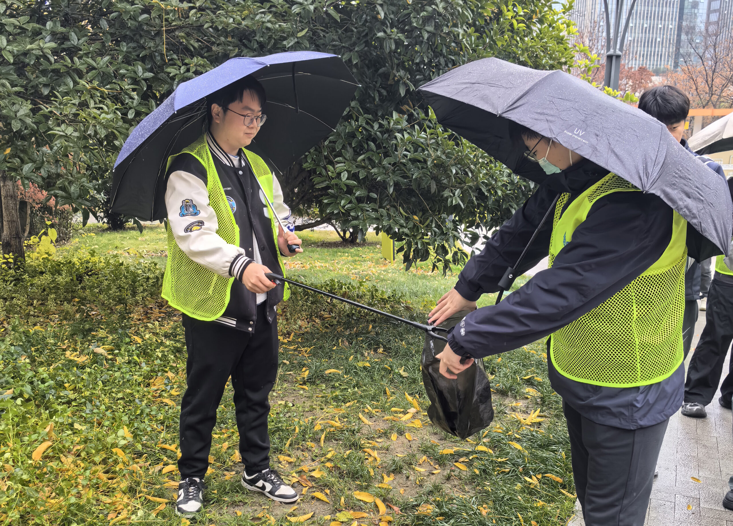 活动伊始,通过一场生动的环保知识宣讲,团员们深入了解了垃圾分类与环境保护的重要意义。随后,大家以小组为单位,在金匮公园内展开了细致的清洁行动。尽管细雨绵绵,青年团员们热情不减,他们手持垃圾袋、垃圾夹等工具,沿步道、草坪认真搜寻,将纸屑、塑料包装等一一清理。